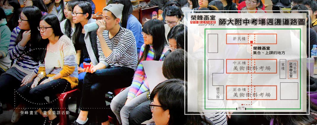 - 榮峰畫室學員在台師大考場衝刺活動,考場教學集合地點路線圖 -